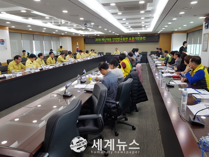 ▲ 2019년 재난대응 안전한국훈련 회의. 재난대응 안전한국훈련은 행정안전부 주관으로 중앙정부 및 지방자치단체 등 705개 기관이 동시에 참여하는 범국가적 재난대응 종합훈련이다. |
