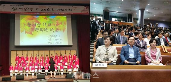 ▲ 지난 8일 서울시교육청 산하 강동송파교육지원청이 주최하는 ‘2015 강동송파 밝고맑은 노래부르기’ 대회에 내빈으로 참석한 진두생 서울시의원(오른쪽 가운데)이 대회를 참관했다. © 세계뉴스 |