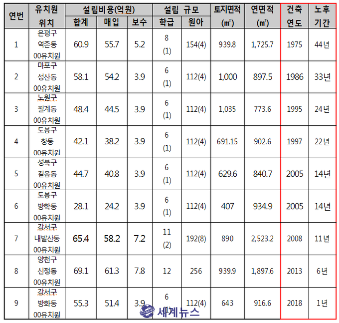 [세계뉴스] 정서영 기자 = 서울시교육청이 노후 건물에 대한 정밀 안전진단을 사립유치원에만 맡긴 채 무려 44년이 된 유치원 건물 매입을 강행했던 것으로 드러났다.