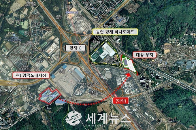 시는 그간 대체부지 확보를 다각적으로 검토한 결과, 교통 편의성. 주변 환경 등을 고려하여 경부고속도로, 양재대로와 근접한 교통 요충지인 ‘농협주유소부지(양재동 229번지)’로 이전을 확정했다.