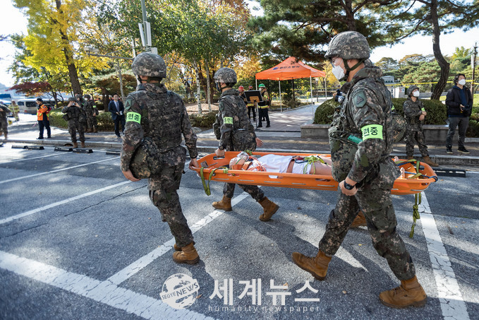 올해는 다중밀집시설 대형화재 재난유형으로 ‘건국대학교 건물 대형화재와 붕괴’를 가상으로 훈련을 실시했다. 화재확산과 붕괴로 인한 인명피해 발생 시의 대응체계 가동과 긴급구조, 수습과 복구 활동 등을 훈련했다.