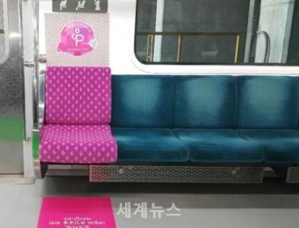 [세계뉴스 윤소라 기자] 지하철 임산부 배려석 디자인이 바뀐다. 좌석 뒤쪽엔 새롭게 개발된 앰블럼을 붙이고 좌석부터 바닥까지 분홍색 띠를 둘러 눈에 띄게 연출한다.