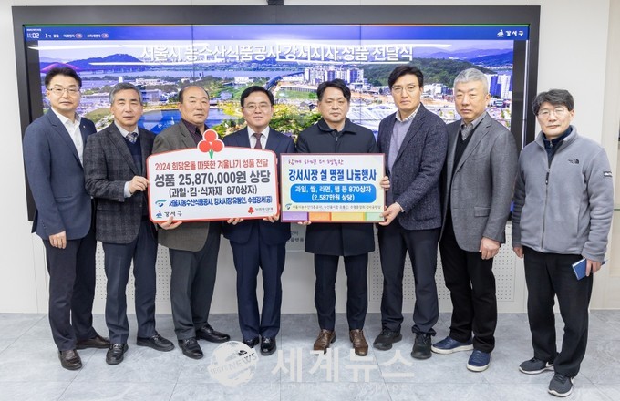 [세계뉴스 전승원 기자] 서울시농수산식품공사(사장 문영표)는 2024년 설 명절을 맞아 인근 지역 취약 계층에 강서농산물도매시장 강서청과(주), 농협강서(공), 서부청과(주), (사)시장도매인연합회, 수협강서(공)과 함께 설맞이 나눔 행사를 실시했다.