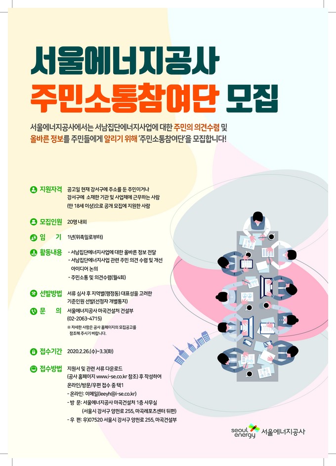 [차성민 기자] 서울에너지공사는 ‘서남집단에너지사업 주민소통참여단’을 모집한다고 28일 밝혔다.