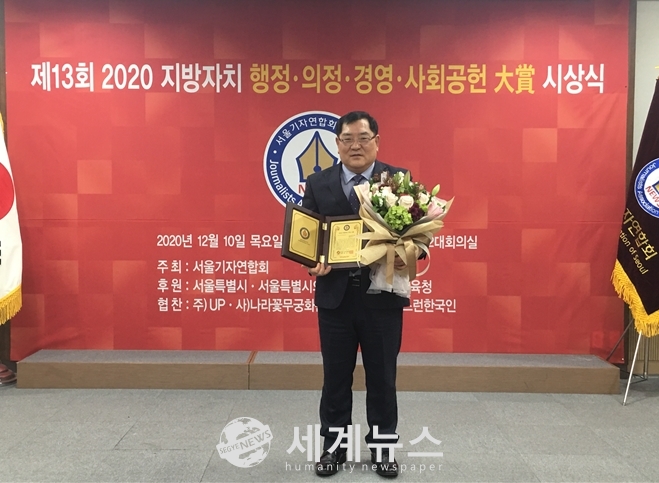 [세계뉴스 정서영 기자] 서울시의회 도시계획관리위원회 김희걸 위원장(더불어민주당, 양천4)은 10일 서울기자연합회(회장 정상린)가 주최한 '2020 지방자치 행정 의정 경영대상' 시상식에서 의정부문의 대상을 수상했다.
