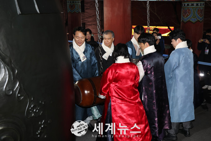 [세계뉴스 전승원 기자] 김현기 서울특별시의회 의장은 31일 자정 보신각에서 개최된 2023년 제야의 종 타종행사에 참석해 힘찬 타종으로 새해를 열었다.