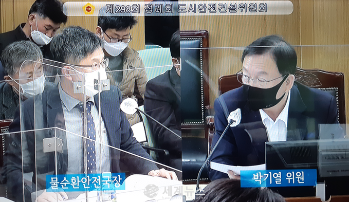 박 의원은 이날 감사에서 “행정사무감사 자료를 보면 2018년 12월 31일 기준 하수관로는 10,256km 중 668km가 설계기준 통수단면이 부족하고 차집관로는 472km 중 65.2km가 통수단면이 부족한 상태였다”고 설명했다.