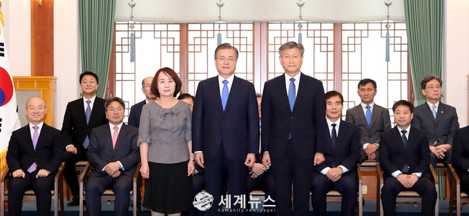 [세계뉴스] 탁병훈 기자 = 문재인 대통령은 19일 오전 10시30분부터 11시까지 청와대 본관에서 박삼득 국가보훈처장 임명장 수여식을 가졌다.