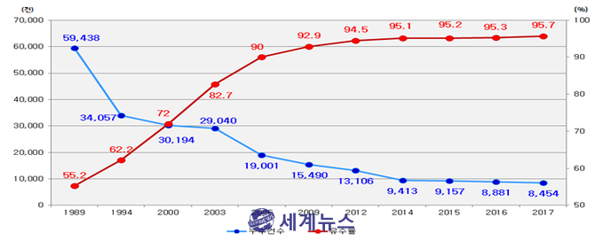 [세계뉴스] 정서영 기자 = 서울시가 ‘17년 사상 최저 누수율 1.9%를 달성했다. 이는 작년 2.3%에 비해 0.4% 절감한 수치이며, 유수율 역시 전년대비 0.4% 증가한 95.7%를 달성해 국내 최고다. 세계 1위인 도쿄(96%)에 이어 2위 수준이다.