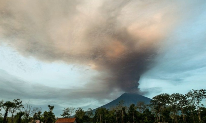 발리 최고봉 아궁화산은 25일 오후 4시 30분 경 첫 번째 분출을 시작으로 지속적으로 화산재가 9000m 상공까지 치솟았다고 전해졌다. 화산에서 60 km 떨어진 응우라이 국제공항까지 화산재가 떨어지고 있어 이미 모든 항공편이 결항 되었다고 한다.