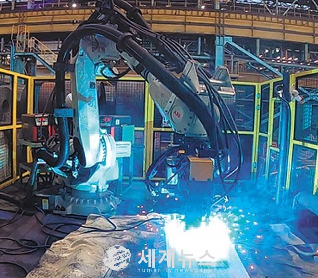 ▲ 포스코제철소에 설치된 용접 로봇이 작업하고 있는 모습. |