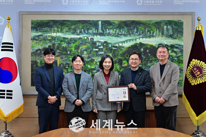 | ▲ 20일 최호정 의장이 결식 아동 돌봄에 앞장서고 있는 임민재 BGF리테일 상무에게 감사장을 수여했다. |