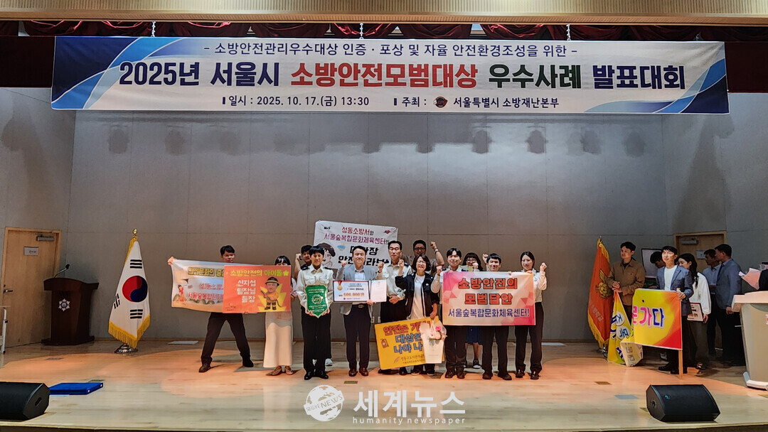 [세계뉴스 = 조홍식 기자] 성동구청 산하 성동구도시관리공단이 운영하는 서울숲복합문화체육센터가 서울소방재난본부가 주관하는 '2025년 서울시 소방안전모범대상 우수사례 발표대회'에서 최우수상을 수상했다.