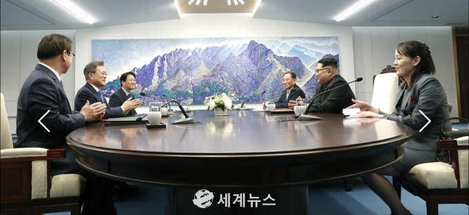 ▲ 문재인 대통령과 김정은 북한 국무위원장이 '2018남북정상회담' 평화의집에서 모두발언을 하고 있다. |
