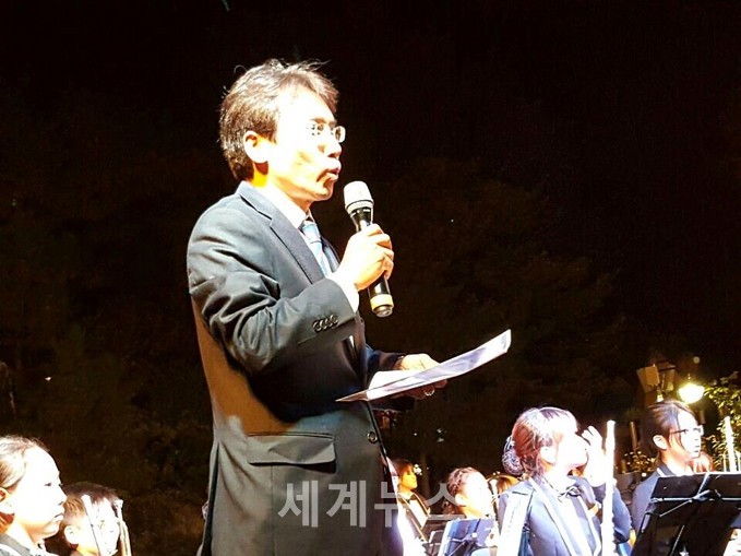 ▲ 23일 노원구 상계동 수락산 당고개 공원에서 열린 '2015 수락산 문화나눔 콘서트'에서 김광수 서울시의원이 인사말을 하고 있다. © 세계뉴스 |
