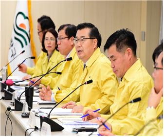 | ▲ 류경기 중랑구청장이 '신종 코로나바이러스' 감염 차단에 긴급대응 회의를 하고 있다. |