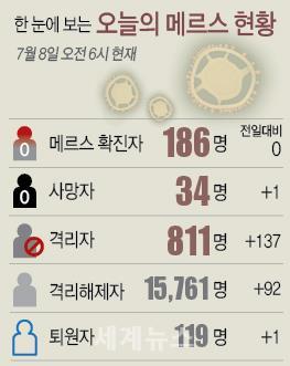 메르스 추가 확진자는 이날까지 사흘째 발생하지 않아 누적 환자수는 186명을 유지했다.