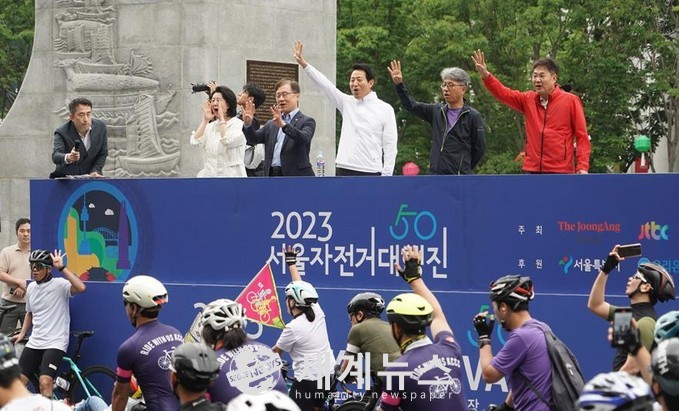 [세계뉴스 정서영 기자] 서울특별시의회 행정자치위원회 옥재은 의원(중구2, 국민의힘)이 지난 21일 서울 광화문광장에서 열린 ‘2023 서울 자전거 대행진’에 참석해 참가자들을 격려했다.