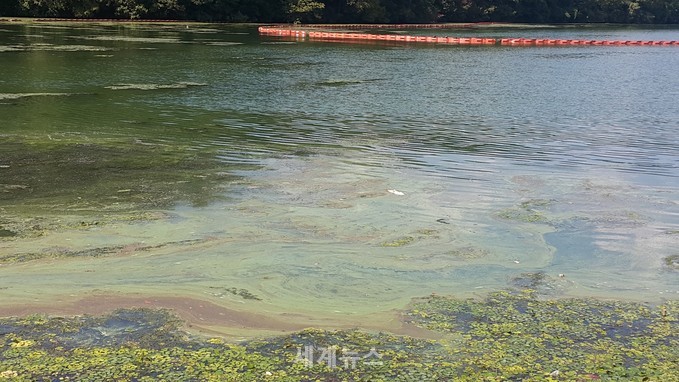 ▲ 녹조가 넓게 퍼져있는 팔당호 © 세계뉴스 |