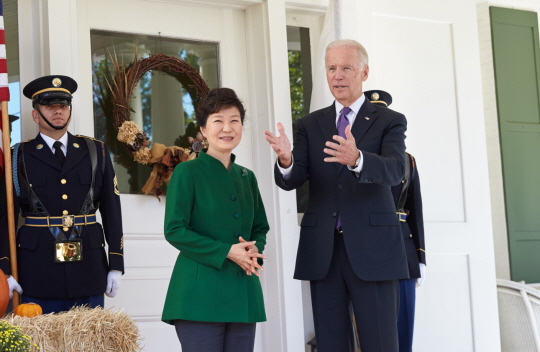 박 대통령은 "지난 2013년 12월 바이든 부통령 방한시만 해도 전작권 반환, 방위비 분담, 원자력 협정 개정 등 만만치 않은 현안이 많았는데 양국이 신뢰 바탕으로 이런 현안을 원만하게 해결한 것을 뜻 깊게 생각한다"면서 "현재 한미동맹이 과거 어느 때보다 강력한 상태"라고 말했다.