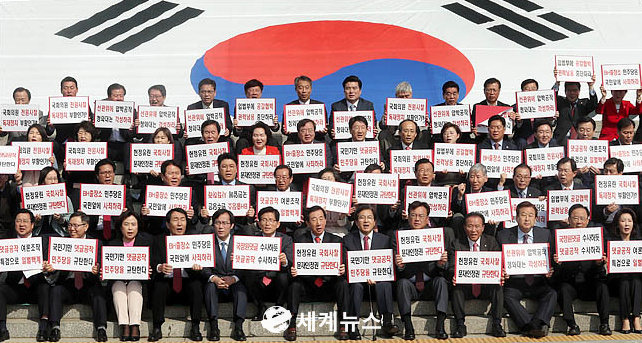 [세계뉴스] 조남식 기자 = 자유한국당은 17일 국회에서 무기한 철야 천막농성에 돌입했다. 한국당은 이날 김기식 원장과 김경수 의원에 대한 특검을 더불어민주당에 요구하며 대여 투쟁을 선언했다.