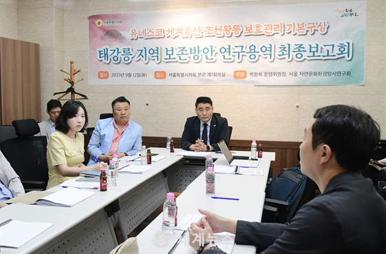 [세계뉴스 윤소라 기자] 서울시의회 박환희 운영위원장(국민의힘, 노원2)은 12일 서울시의회 본관 제1회의실에서 의원연구단체 ‘자연문화환경탐사연구회’와 공동 주관으로 ‘태.강릉 지역 보존방안 수립을 위한 연구용역’ 최종보고회를 개최했다.