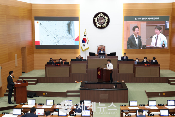 ▲ 지난 13일 문성호 서울시의원이 제319회 정례회 시정질문을 통해 서울시 문화·관광 활성화를 위한 기본 인프라인 교통 현안 및 시민 공간 문제 등을 오세훈 시장에게 질문하고 있다. |