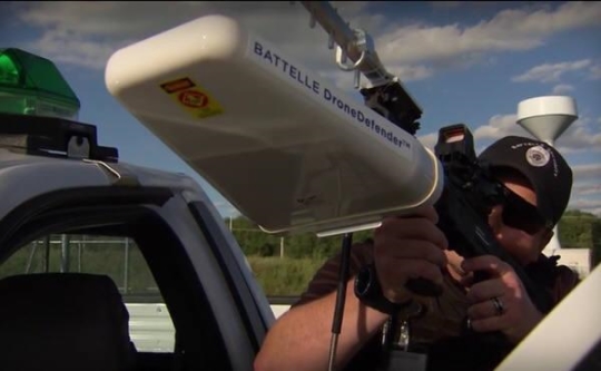 드론디펜더(DroneDefender)라는 이름의 이 전파총은 약 400미터 정도의 공중에서 비행중인 드론 조종 전파를 차단시켜, 되돌아가게 하거나 강제 착륙시킬 수 있다.