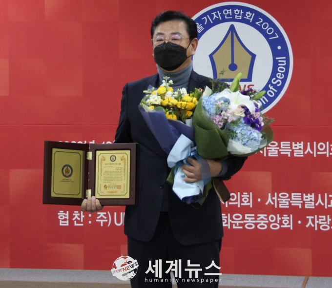 [세계뉴스 정서영 기자] 서울시의회 교통위원회 이광호 의원(더불어민주당, 비례대표)은 10일 서울시의회 제2대회의실에서 서울기자연합회에서 주관한 ‘2020 지방자치 행정.의정.경영.사회공헌 대상’ 시상식에서 의정대상을 수상했다.