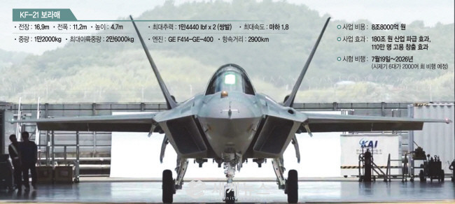 또한 최초 비행에선 초음속까지 내지 않고 경비행기 속도인 시속 400㎞ 이후 속도로 저공비행하며 30∼40분 정도 비행할 예정이다. KF-21 개발사업을 총지휘해온 KAI고정익사업부문장인 류광수 부사장은 “최초 시험비행은 지상시험을 모두 끝낸 전투기가 실제 비행해도 이상이 없는지를 확인하는 ‘건전성 시험’에 무게가 실린다”고 말했다.