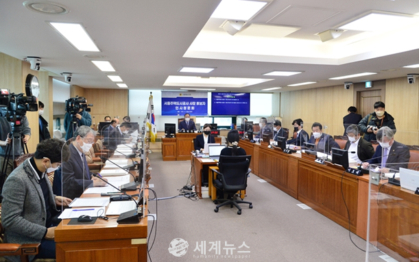 [세계뉴스 정서영 기자] 서울시의회 서울주택도시공사 사장 후보자 인사청문 특별위원회(이하 “특별위원회”)는 지난 10일 김헌동 사장 후보자에 대하여 “부적격” 의견으로 인사청문 경과보고서를 의결했다.