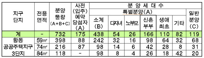 사전(입주)예약당첨자 175세대, 신혼부부 등 특별 438세대, 일반 119세대 모집
