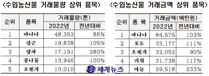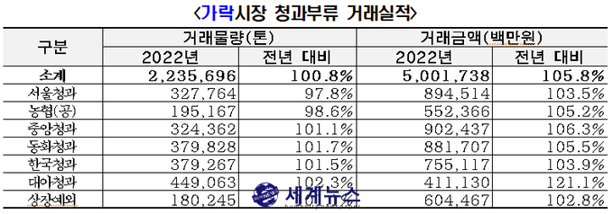 [세계뉴스 차성민 기자] 서울시농수산식품공사(사장 문영표)는 2022년 가락시장 청과부류 거래실적 분석 결과를 발표했다.