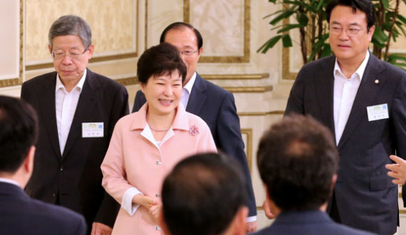 이날 박 대통령은 청와대에서 새누리당 신임 지도부를 초청해 오찬을 함께 한 자리에서 이정현 대표가 가정용 전기요금 누진제에 대한 대책 마련을 건의하자 이같이 말했다.