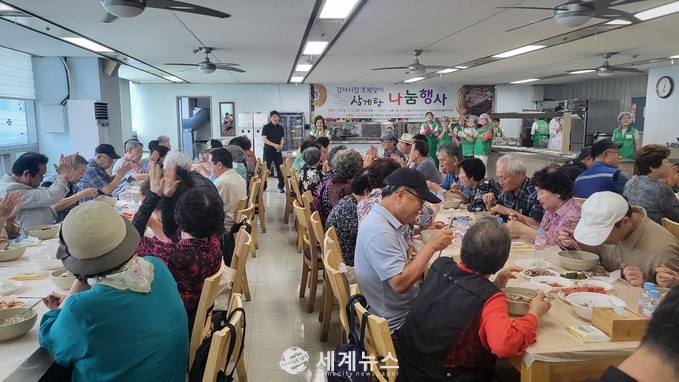 | ▲ 지난 12일 서울시농수산식품공사 강서지사는 초복(15일)을 맞아 강서지사 구내식당에서 강서구 지역 취약계층 어르신 등 120명을 초대하여 삼계탕 나눔 행사를 가졌다. |