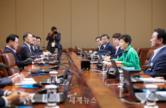 ▲ 수석비서관 회의를 주재하고 있는 박근혜 대통령 © 세계뉴스 |