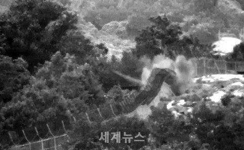 ▲ 국방부, 비무장지대 지뢰폭발 사고 당시 열상감시장비(TOD)로 촬영된 지뢰 폭발장면. © 세계뉴스 |