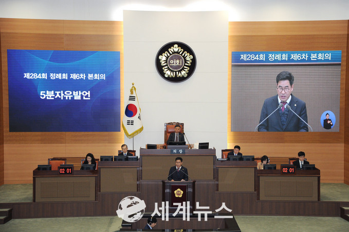 [세계뉴스] 정서영 기자 = 서울특별시의회 김종무 의원(더불어민주당, 강동2)은 20일 제284회 정례회 제6차 본회의에서 5분 자유발언을 통해 시민 교통편의증진을 위해 현재 서울시가 가지고 있는 마을버스 노선조정 권한을 자치구로 이양할 것을 촉구했다.