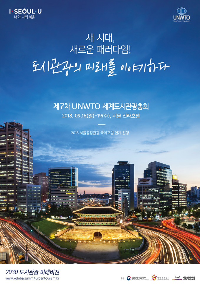 서울시는 ‘제7차 UNWTO 세계도시관광총회’가 2030 도시관광 미래비전을 주제로 9월16일(일)부터 19일(수)까지 서울 신라호텔에서 열린다고 밝혔다. 서울시와 국제연합 세계관광기구(UNWTO, United Nations World Tourism Organization)가 공동 주최한다.