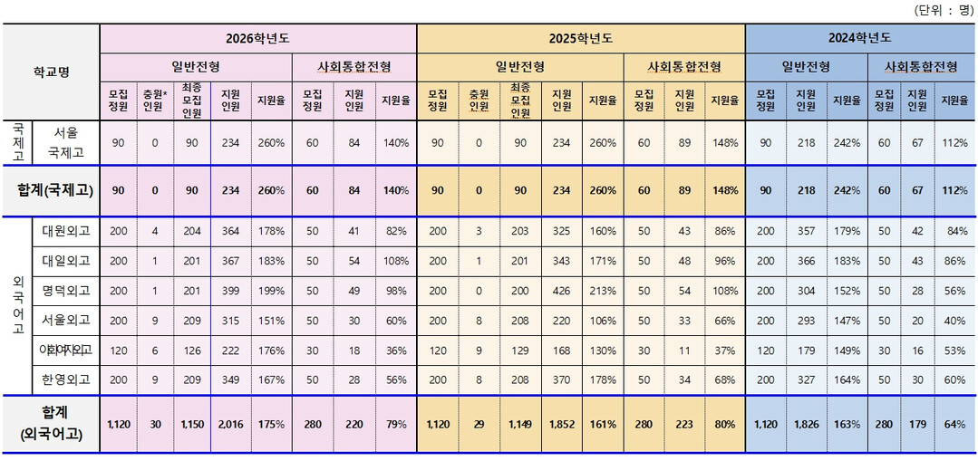 2024~2026학년도 고입 자사고 인터넷 원서접수 현황.