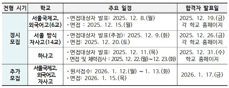 국제고, 외국어고, 자사고 주요 입학전형 일정.