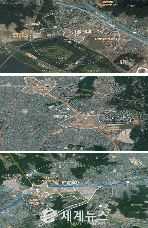 ▲(상 중 하) 서부운전면허시험장 일대. 연신내‧불광지역. 온수역세권 일대. |
