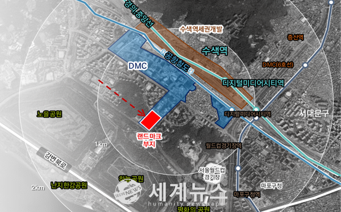 [세계뉴스 정서영 기자] 서울 상암 디지털미디어시티(DMC) 사업은 마포구 ‘상암새천년신도시’의 택지개발사업지구 내 세계적 디지털 미디어 산업단지를 조성하여, 콘텐츠 생산지, 디지털미디어 기술 관련 산학연센터가 집적된 첨단산업 클러스터 육성의 하나로서, 상암택지개발사업지구 내 56.9ha의 부지에, 공급대상용지 52필지 약 33.5ha와 공공용지 23.4ha를 중심으로 추진되었으며, 그동안 답보 상태였던 랜드마크부지 사업은 2022년 이후 2030년 준공을 목표로 재추진하고 있는 20년 넘게 끌어온 서울시 사업이다.