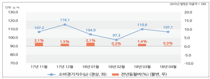 ▲ 소매업 및 숙박·음식점업 소비경기지수 |