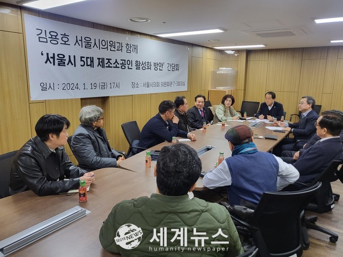 [세계뉴스 정서영 기자] 서울특별시의회 도시안전건설위원회에서 부위원장으로 활동하고 있는 김용호 서울시의원(국민의힘, 용산1)은 지난 19일 서울시의회 의원회관 7층 회의실에서 서울시 5대 제조 소공인들의 애로사항 및 활성화 방안에 대한 의견을 청취하는 간담회를 개최했다.