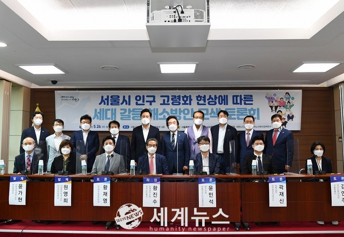 [세계뉴스 정서영 기자] 서울특별시의회 부의장인 김기덕 의원(더불어민주당·마포4)은 대한노인회 부설 한국노인복지정책연구소와 함께 공동으로 26일 오후 서울시의회 제1대회의실에서 유튜브 생중계로 ‘서울시 인구 고령화 현상에 따른 세대 갈등 해소방안 모색 토론회’를 개최했다.