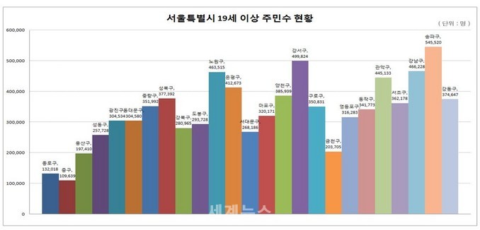 ▲ 서울특별시 19세 이상 주민수 현황 © 세계뉴스 |