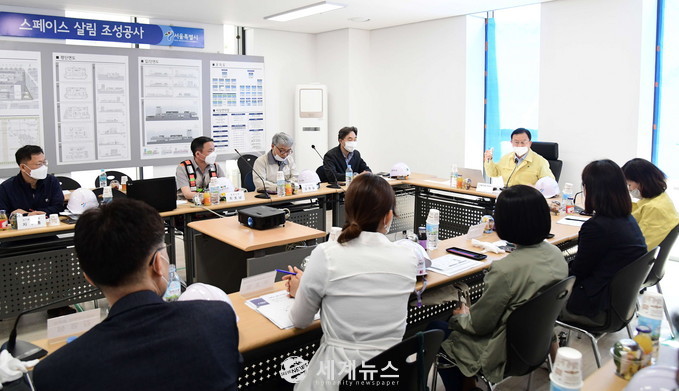 ▲ 박기열 부의장이 서울 동작구 대방동 스페이스살림 공사와 관련, 개관 준비 등 현황에 대해 관련 부처와 간담회를 진행하고 있다. |