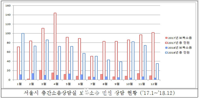 ▲ 서울시 층간소음상담실 보복소음 민원 상담 현황 (’17.1~’18.12) |
