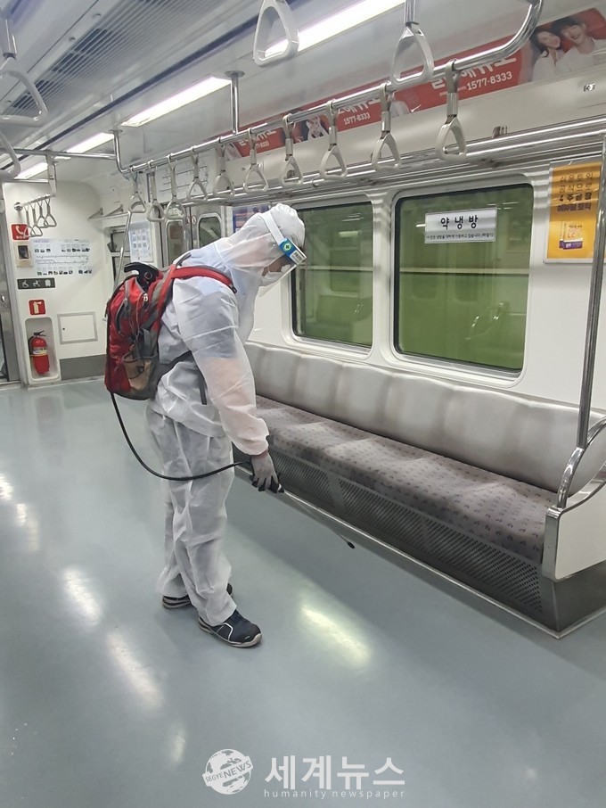 공사는 물리적 방제의 방법으로 운행하는 전동차의 54%에 해당하는 직물소재 의자에 대해 월 1회 대청소 때 100℃ 고온스팀진공청소를 시행하고, 병행하여 화학적 방제로 승객이 자주 접촉하는 의자·손잡이 등은 살균 소독, 객실 바닥은 잔류분무법으로 용량·용법 및 주의사항을 준수하여 ‘감염병예방법’에서 정한 기준(연 9회)보다 강화한 주기(평시 월 2회, 하절기 월 4회)로 시행하고 있다.